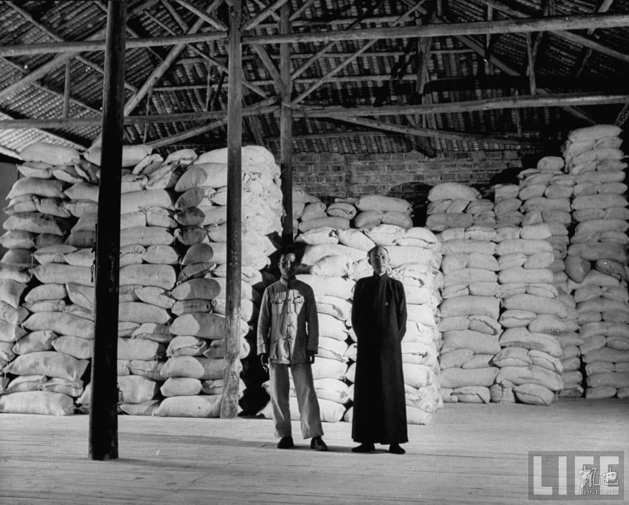 1946年5月,湖南衡阳。衡阳是二战被日军毁灭的城市,战后又发生旱灾,饥民遍地。这是已经运抵衡阳粮库的救济面粉和大米。.jpg
