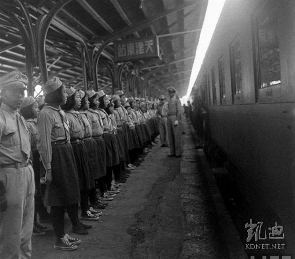 1947年3月,北平。火车站送别美国人的国军。.jpg