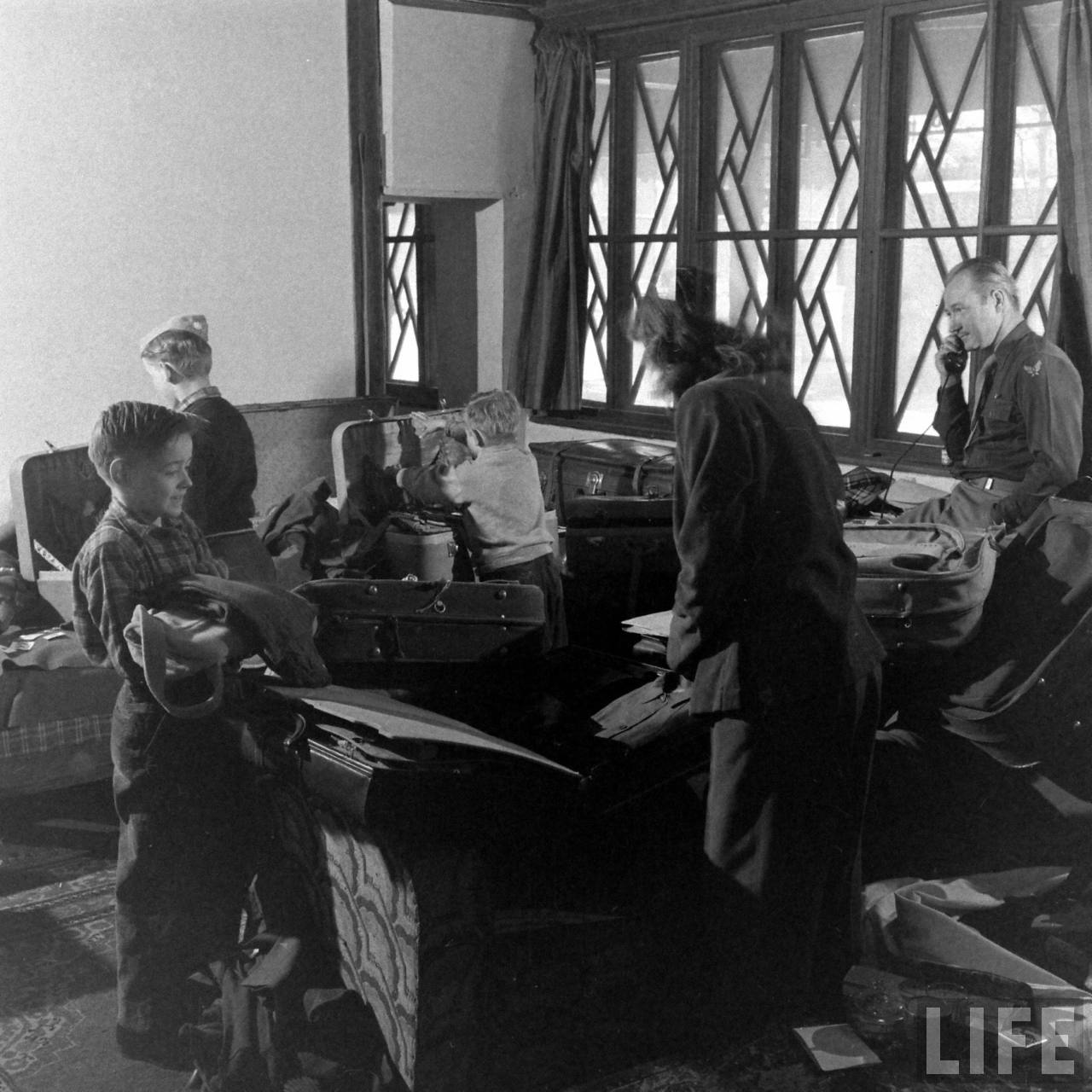 1947年,北平。美国杜鲁门政府停止支持中华民国,军事调停处执行部美方人员撤离北平,此后,中国内战格局改变。这是军调处美方负责人一家在清点行李,最小的那个孩子真可爱。.jpg