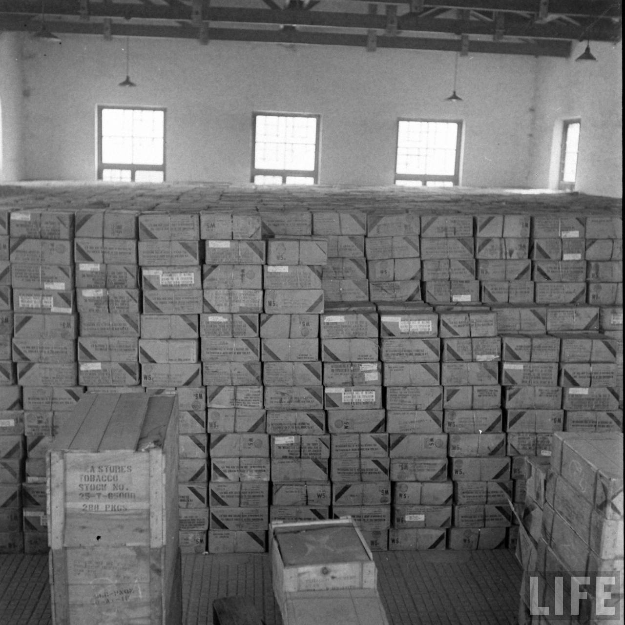 1947年,北平。美国杜鲁门政府停止支持中华民国,军事调停处执行部美方人员撤离北平,此后,中国内战格局改变。这是码好的资料和文件准备装船。.jpg