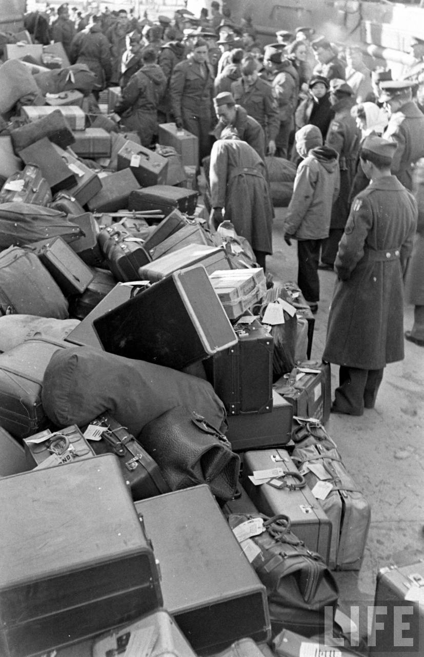 1947年3月,天津。等待撤离回国的军调处美方人员和家眷们在登船前,一堆堆得行李准备托运.jpg