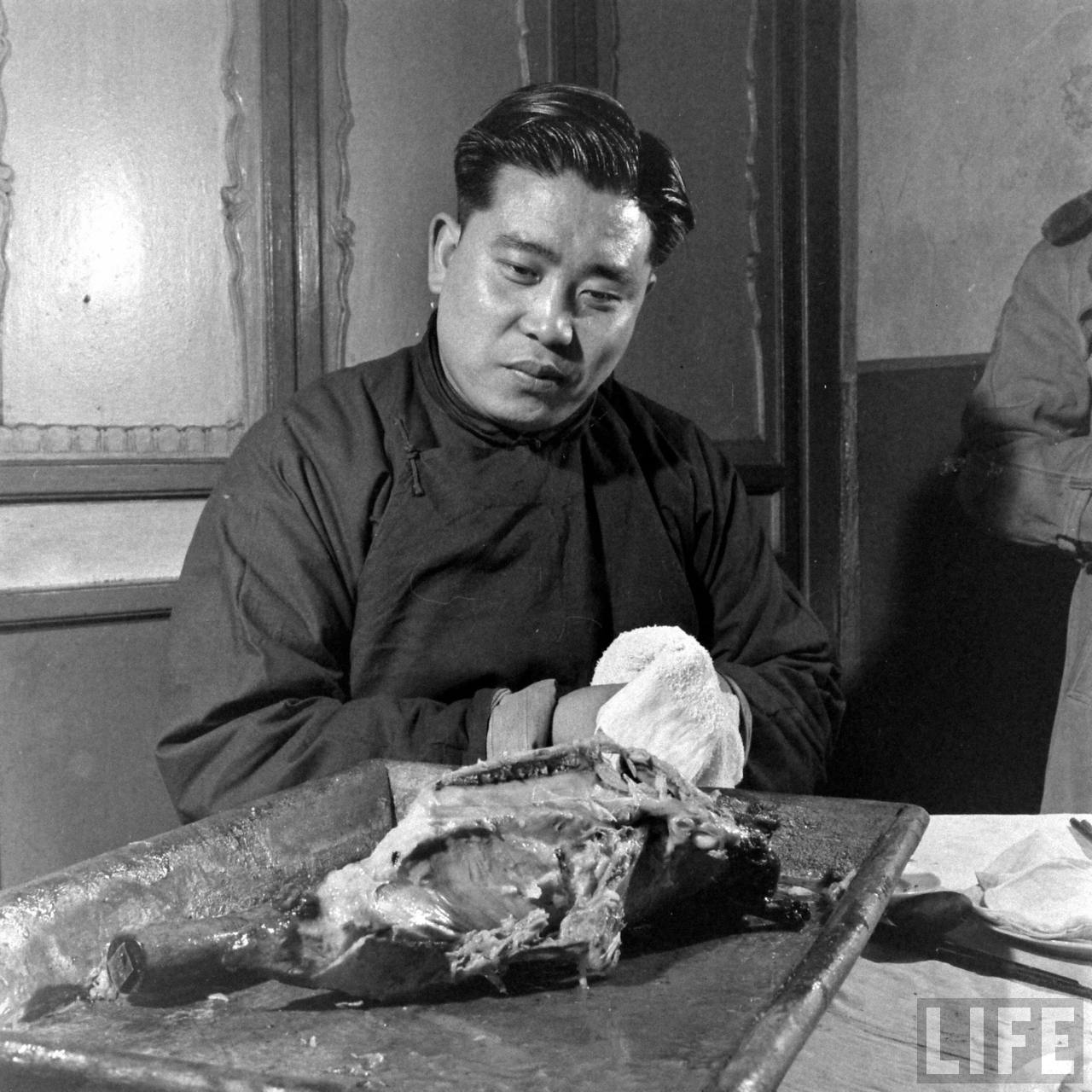 1947年,北平。北京烤鸭是当时市民餐桌上的一道家常菜。.jpg