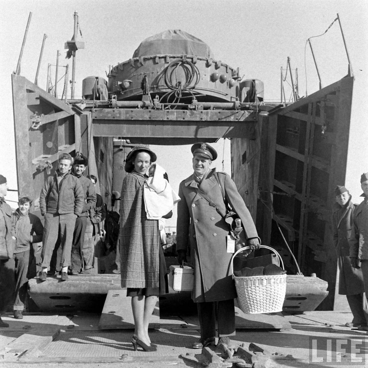 1947年,天津。美国杜鲁门政府停止支持中华民国,军事调停处执行部美方人员撤离北平,此后,中国内战格局改变。这是一家美国人在天津港留影。.jpg