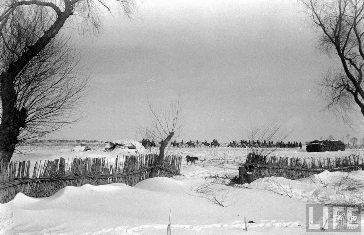 1948年,满洲。冰天雪地里的国军骑兵巡逻队。.jpg