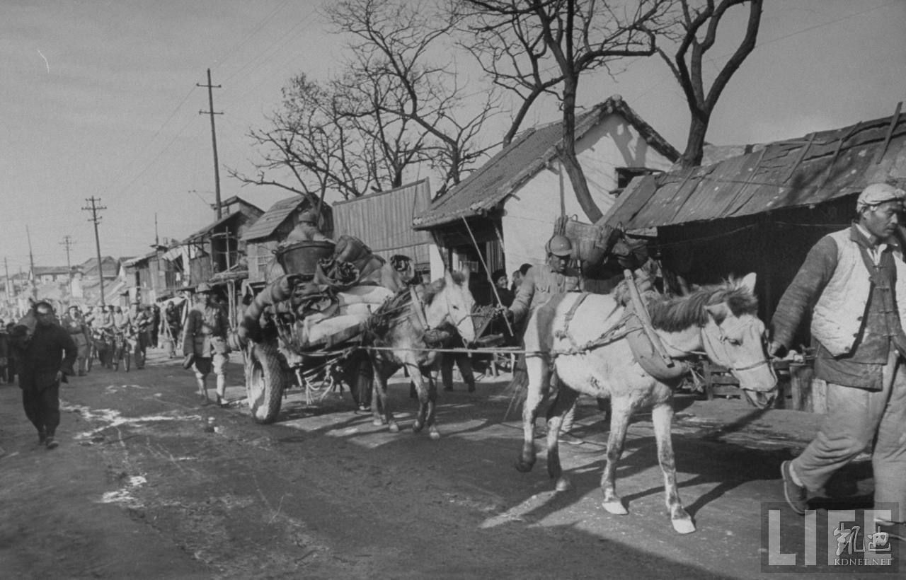 1948年12月,蚌埠。南下的难民,他们用骡马驮着所有能带走的家当。.jpg
