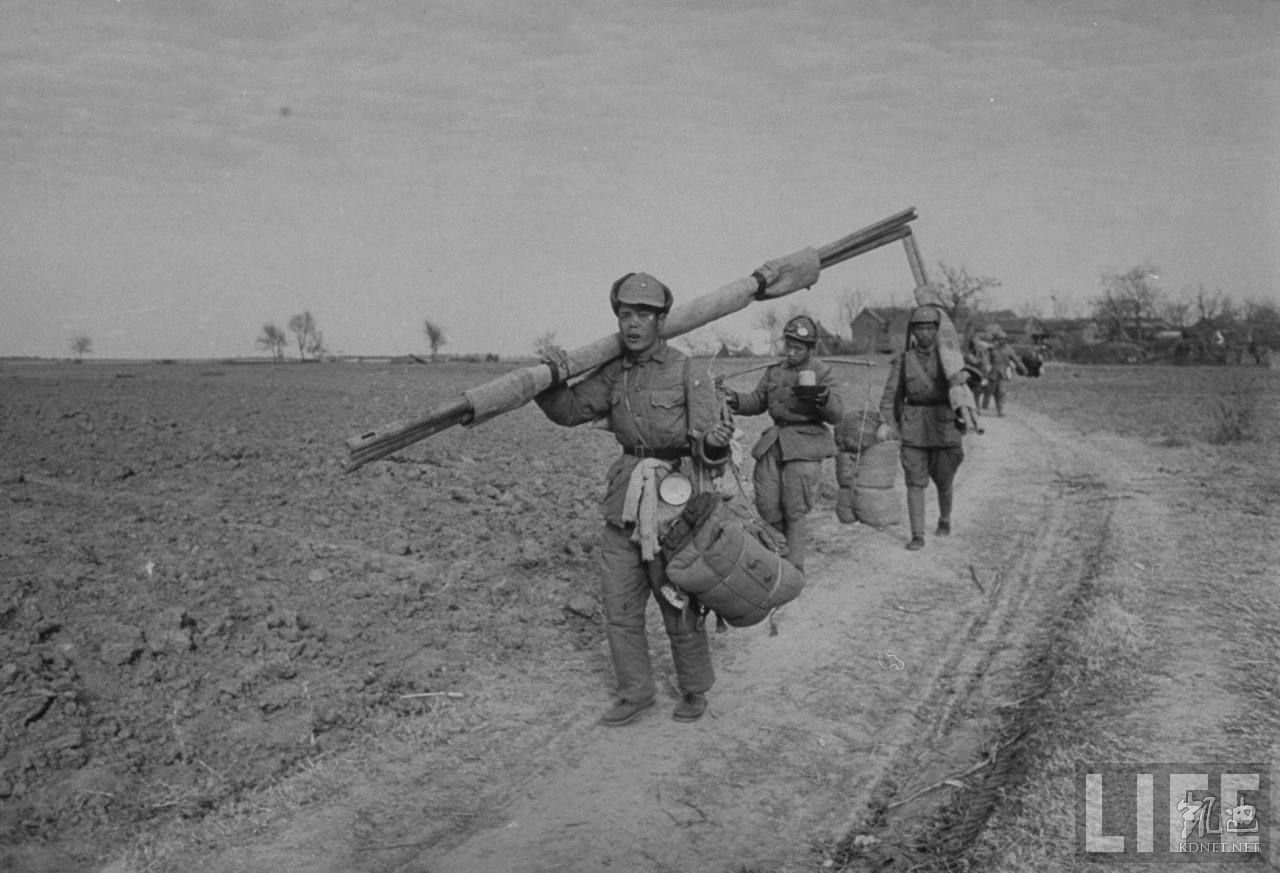 1948年12月,蚌埠。国军士兵在乡下搬运装备,以抵抗周围数以百万计的共产党军队。.jpg