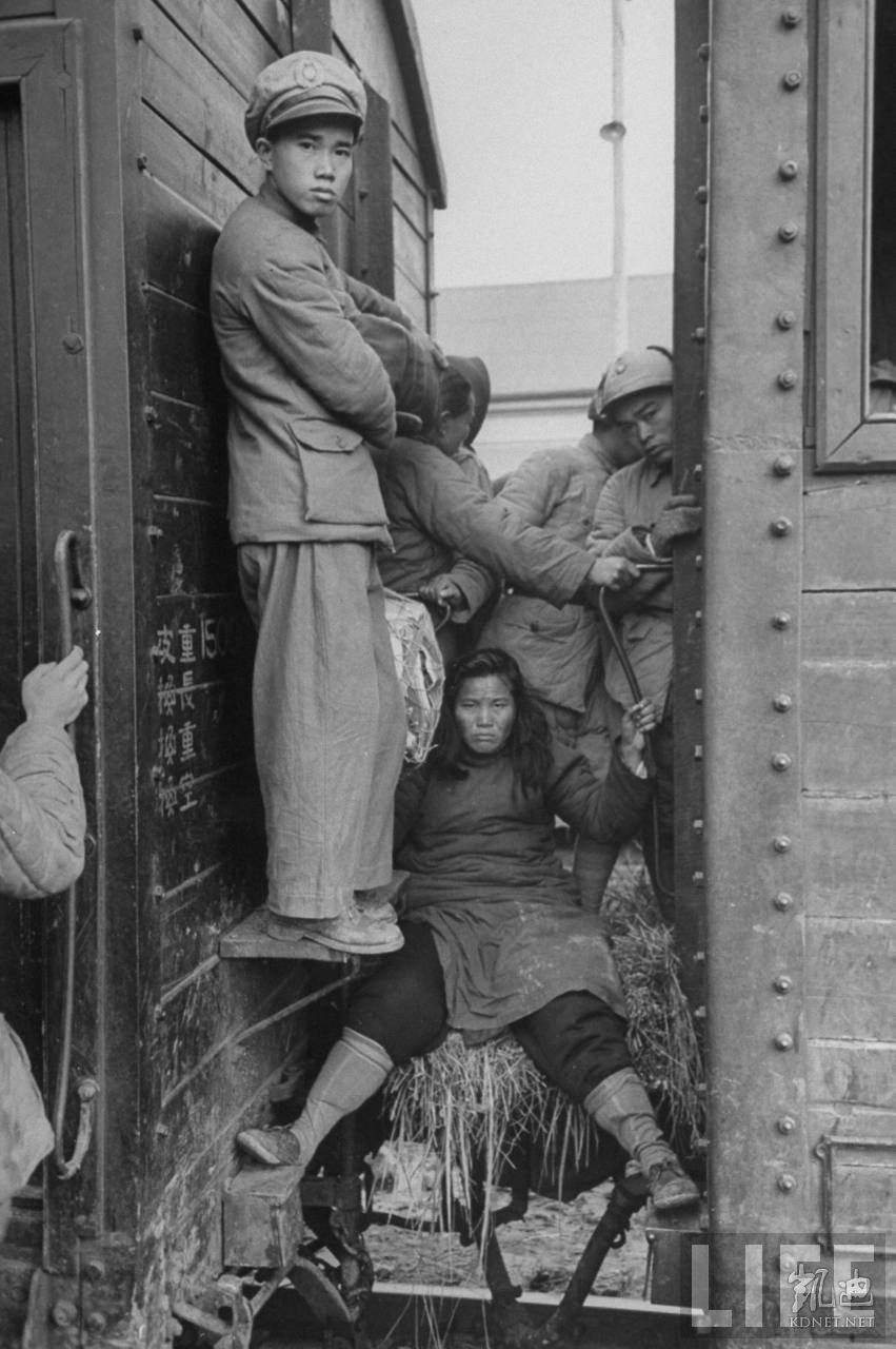 1948年12月,蚌埠。国军士兵坐在火车上,他们刚抵达蚌埠火车站。.jpg