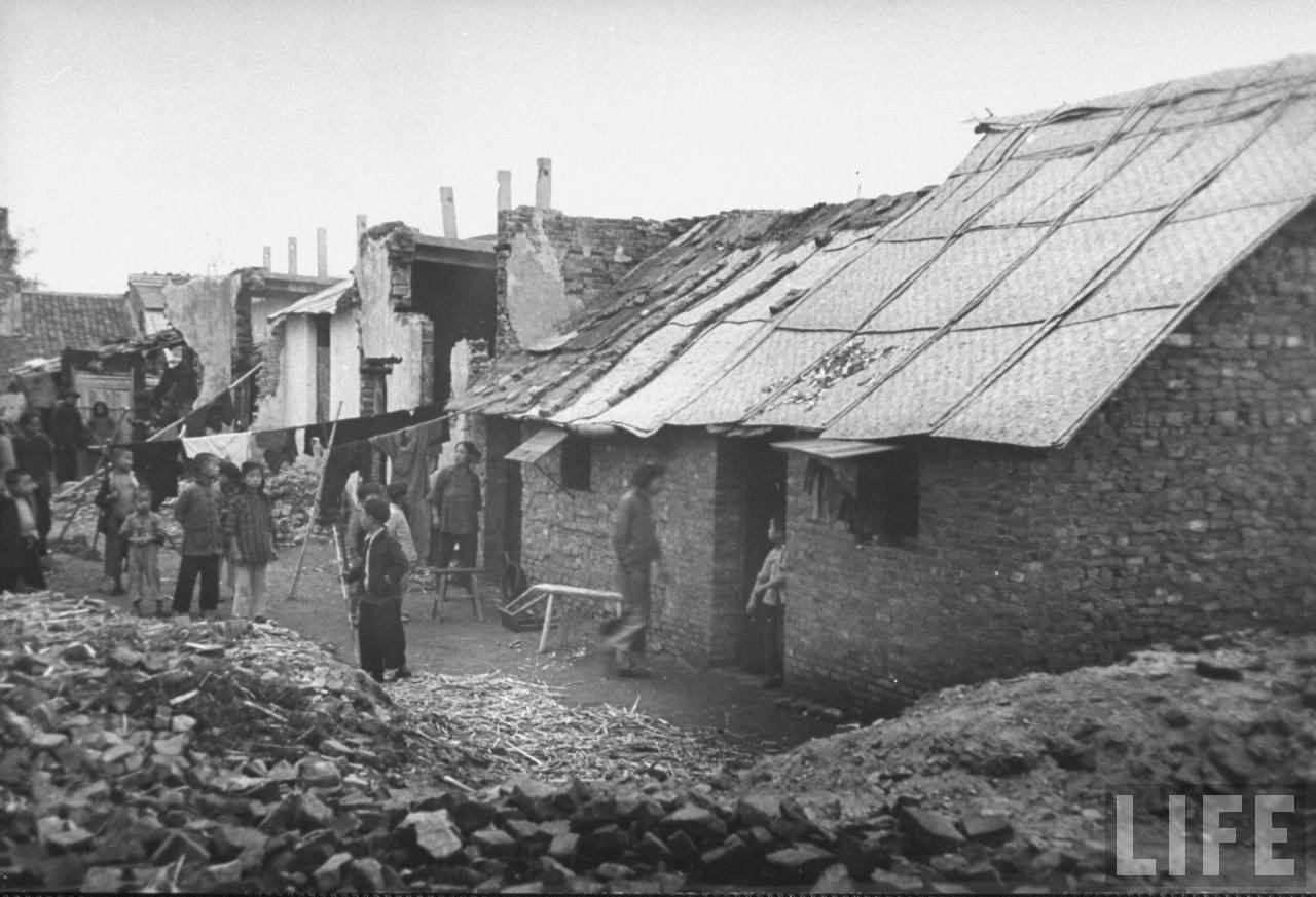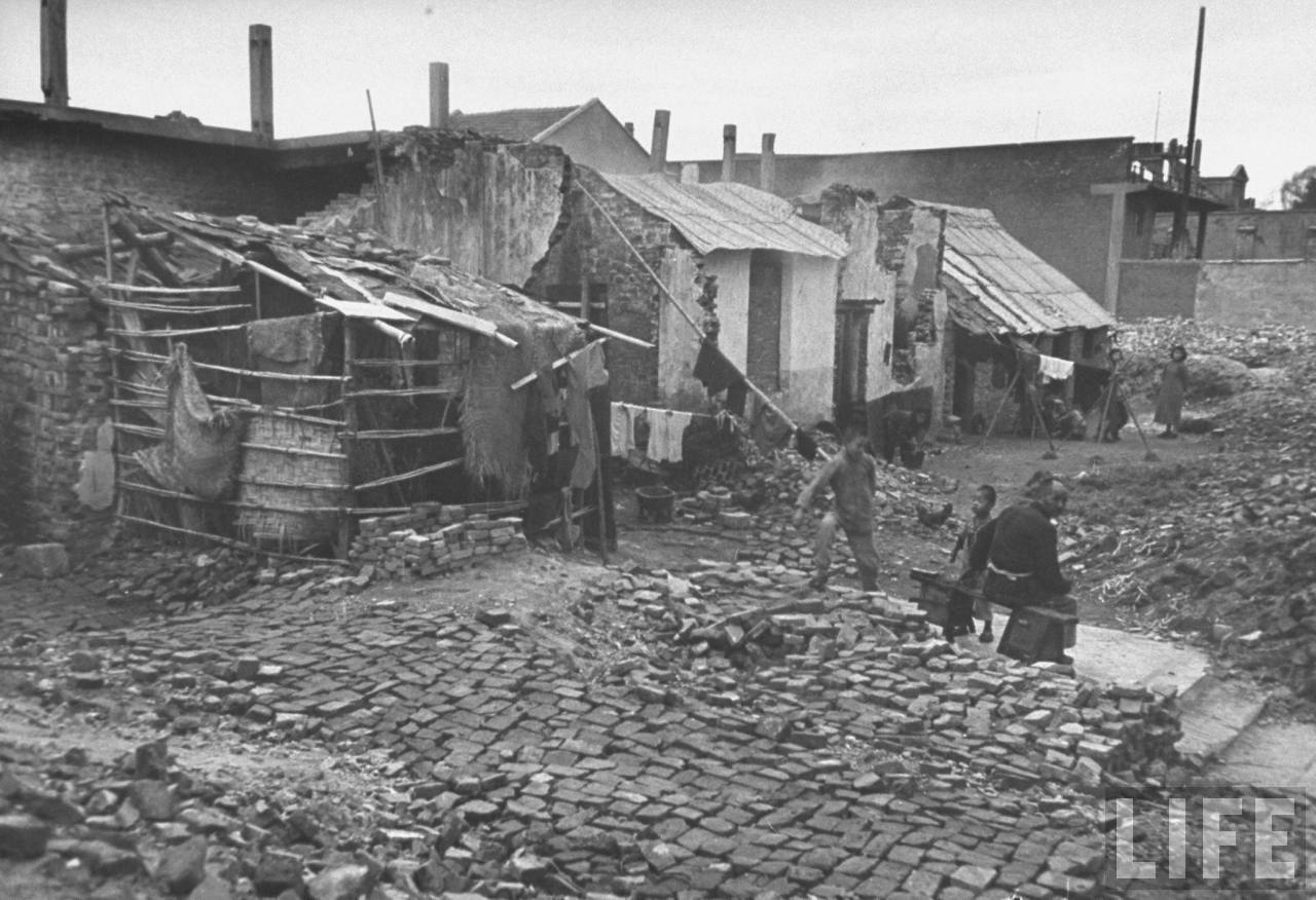 1945年,汉口。城市平民在战后回到自己的家园,它们在废墟上顽强地生存下来,在简陋的房屋中生活并开办商店。.jpg