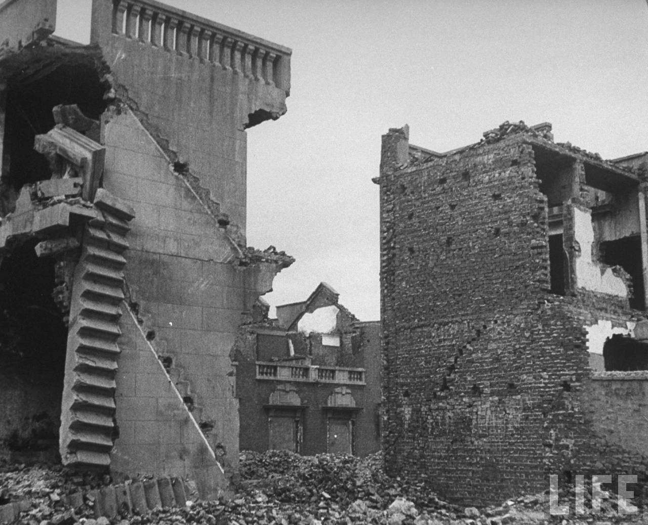 1945年12月,汉口。这栋办公大楼(原汉口市政厅?)已经变成废墟,它是二战时期中华民国撤离时自己摧毁的,不给日本占领军留下任何有用的公用建筑物是当时的政策,也叫“焦土政策”,就是在这样艰难的状况下中华民国赢得了这场战争。.jpg