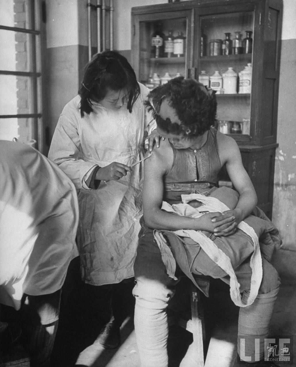 1946年4月,张家口。一家中国医院婴儿患者正接受医生检查。.jpg