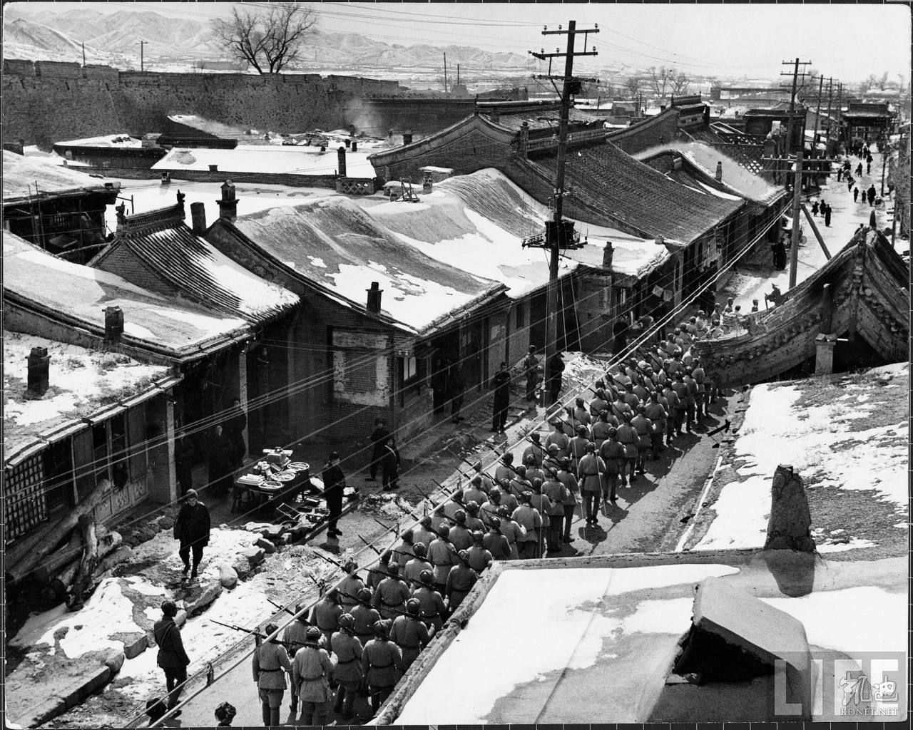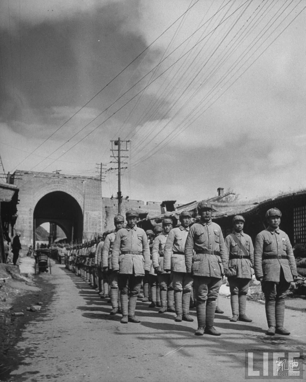 1946年4月,张家口。共产党军队入关经过一个市镇(万全县?),之前他们在五台山和太行山地区,这是长城进入张家口的一处关隘。.jpg