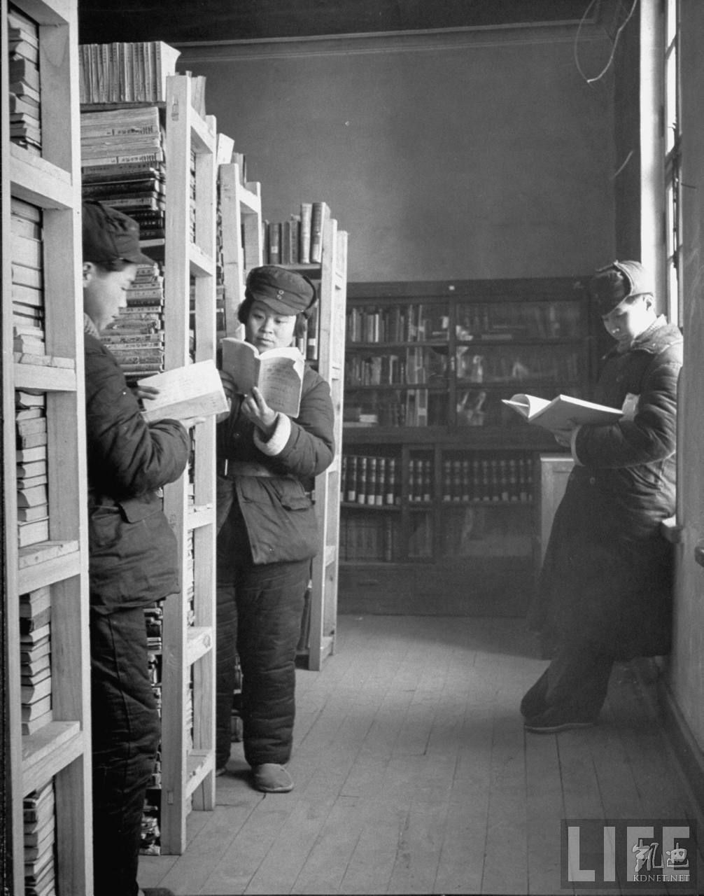1946年4月,张家口。共产党办的华北联合大学图书馆,大多是马克思、恩格斯、列宁、斯大林和毛泽东的书籍。.jpg