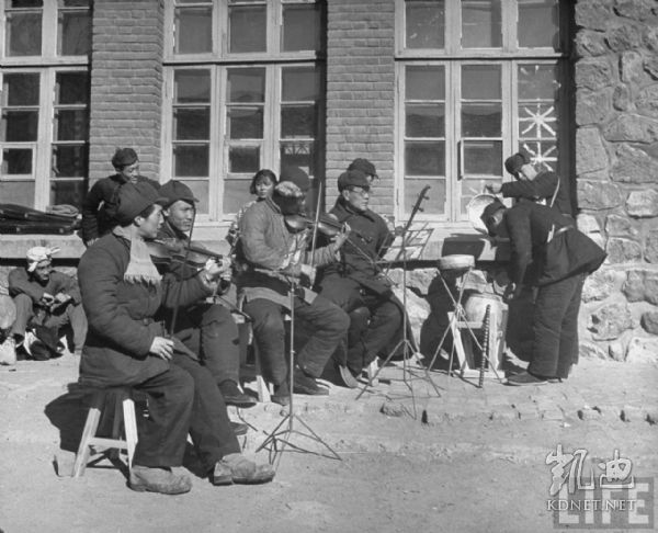 1946年4月,张家口。共产党办的华北联合大学学生们在表演中国传统乐器,与苏联有些不同的是,中国的共产党更多地突出民族主义,而对西方的文化采取排斥的态度。.jpg