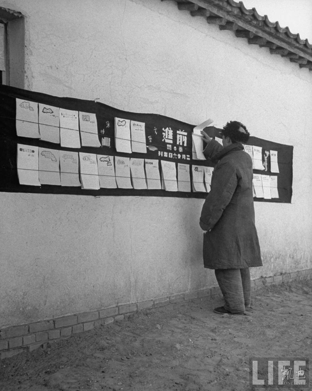 1946年4月,张家口。共产党办的华北联合大学学生在看黑板上粘贴的个人思想总结,共产党要求学员们必须在组织面前公开不得有隐私。.jpg