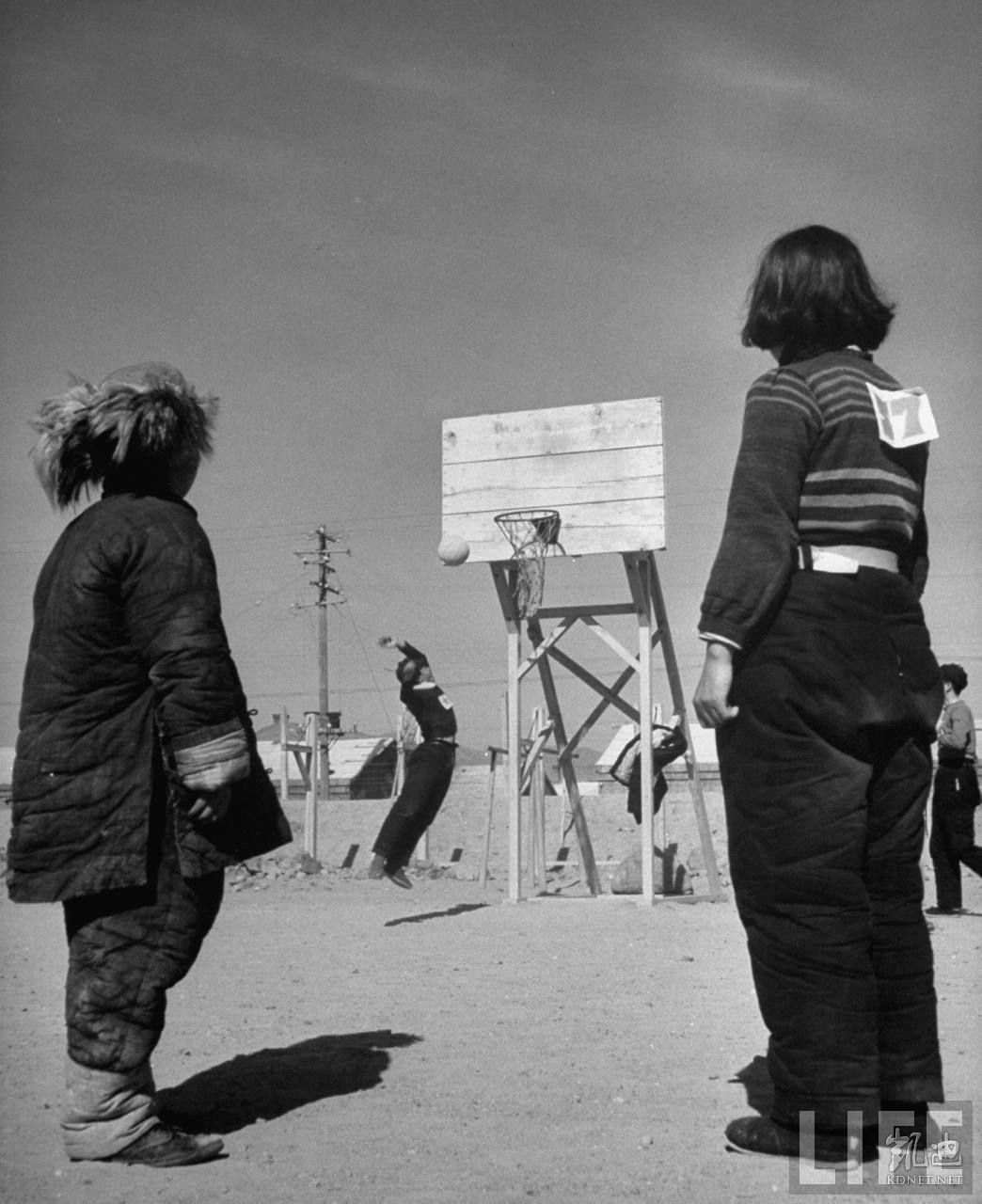 1946年4月,张家口。共产党办的华北联合大学篮球场。.jpg