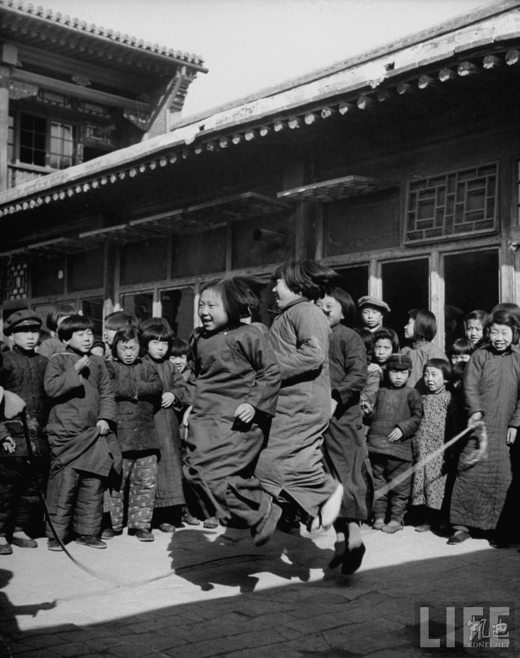 1946年4月,张家口。共产党晋察冀军区大院内,小学生在跳绳。1.jpg