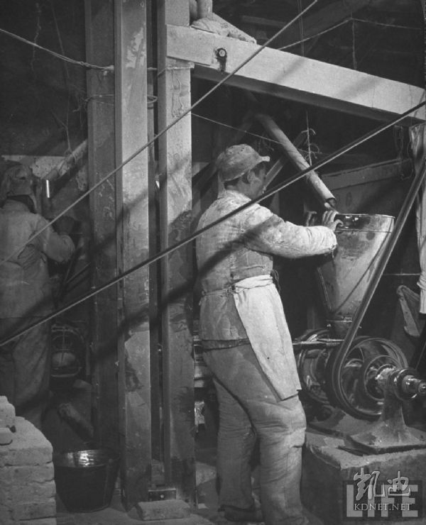 1946年4月,张家口。盐业公司仓库内工人们用榔头分解岩盐。.jpg