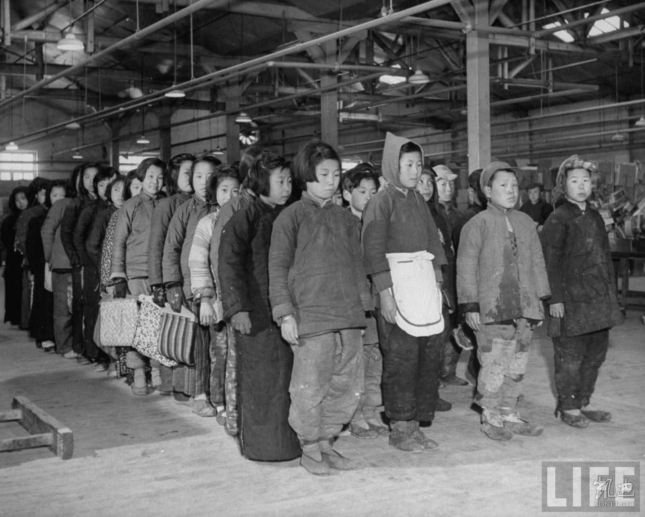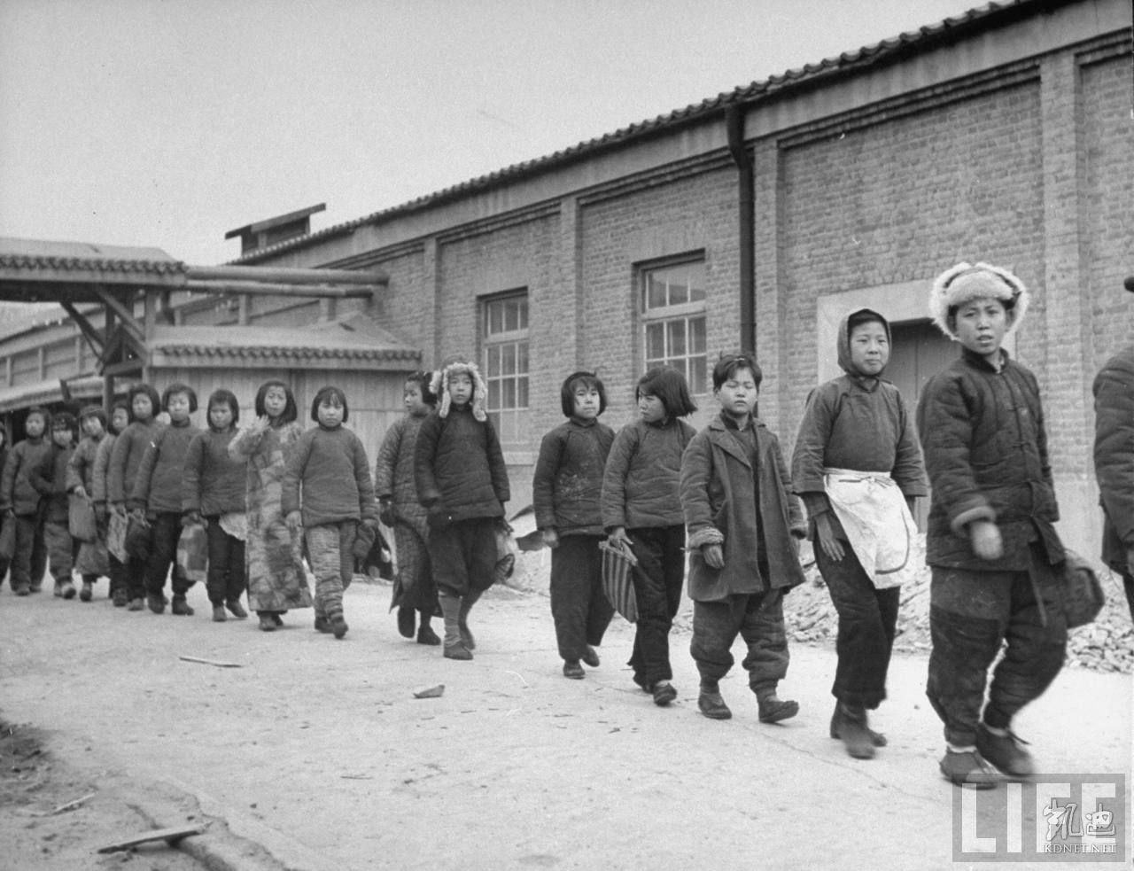 1946年4月,张家口。工场的童工们在下班时间列队集合,准备进入小学接受共产党教育。.jpg