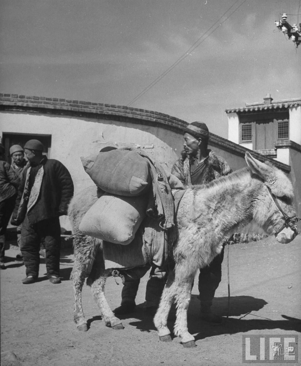 1946年4月,张家口。驴是当地主要的交通工具,牠驮着几大袋盐巴。.jpg