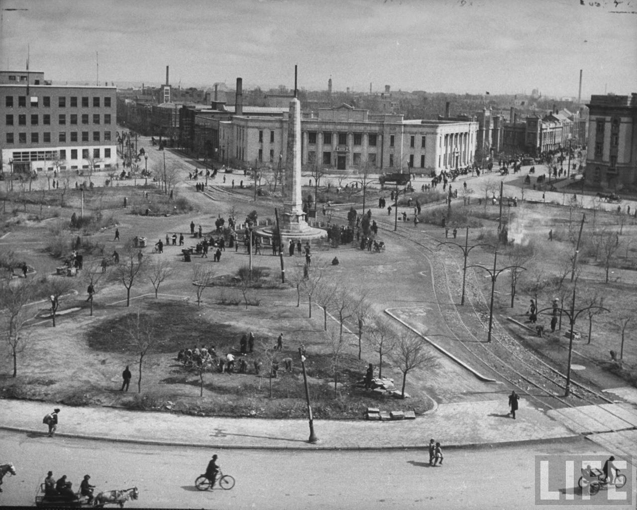 1946年5月,沈阳。市中心广场一角,城市面貌进行了整治已经大为改观,这是在苏联人撤走后,中华民国政府恢复行使主权,新的生活已经开始。.jpg