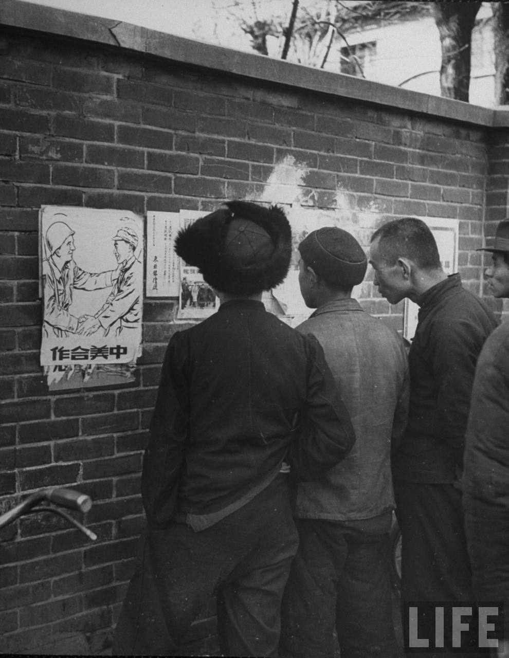 1946年5月,沈阳。市民们正在看当天贴在墙上的时局海报,消息来源是美国新闻署,这时满洲上空国共双方剑拔弩张。.jpg