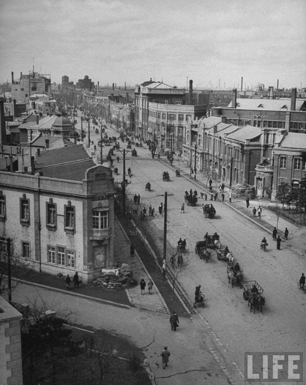 1946年5月,沈阳。市中心的一条街道,城市面貌进行了整治已经大为改观,这是在苏联人撤走后,中华民国政府恢复行使主权,市民们悠闲地在街道散步,新的生活已经开始。.jpg