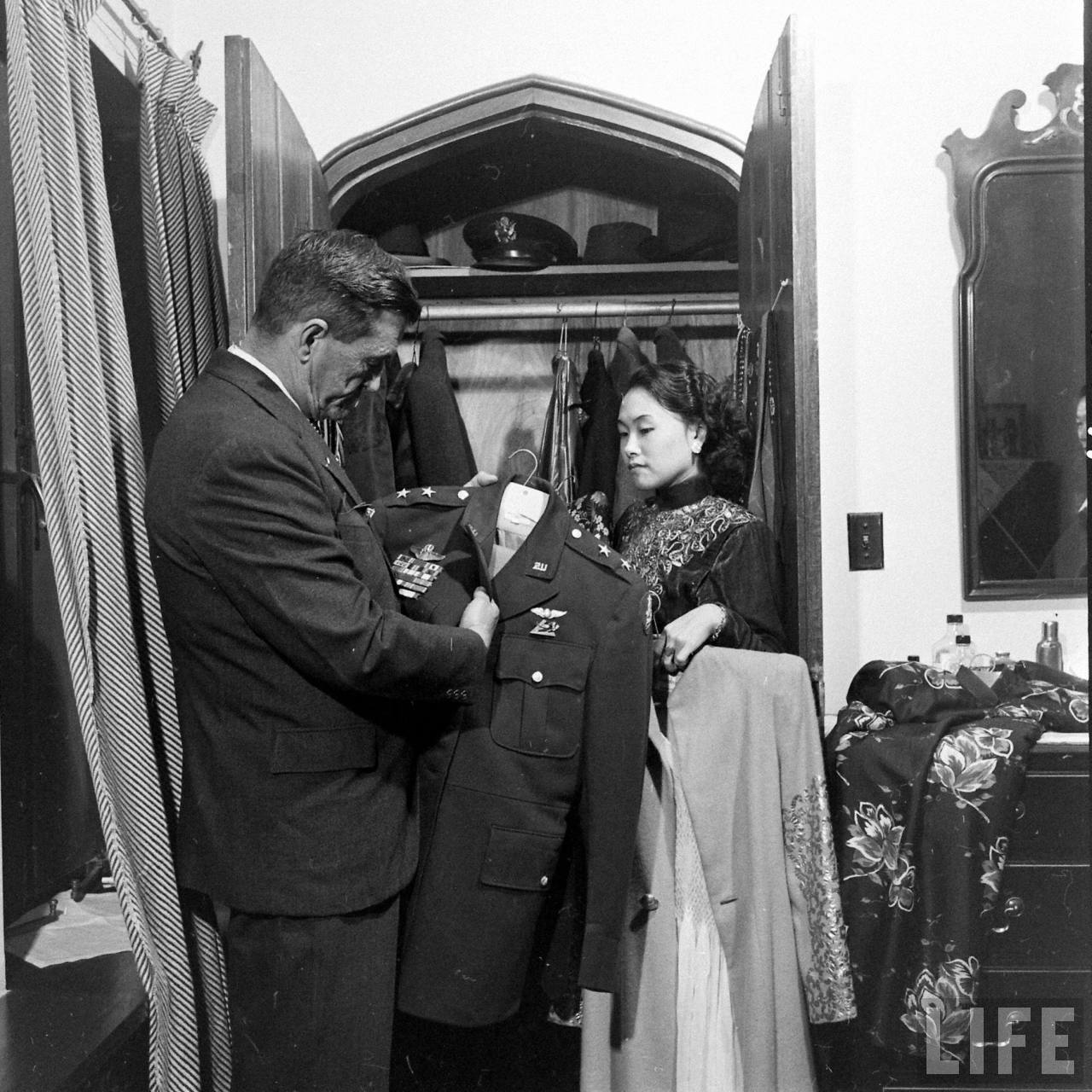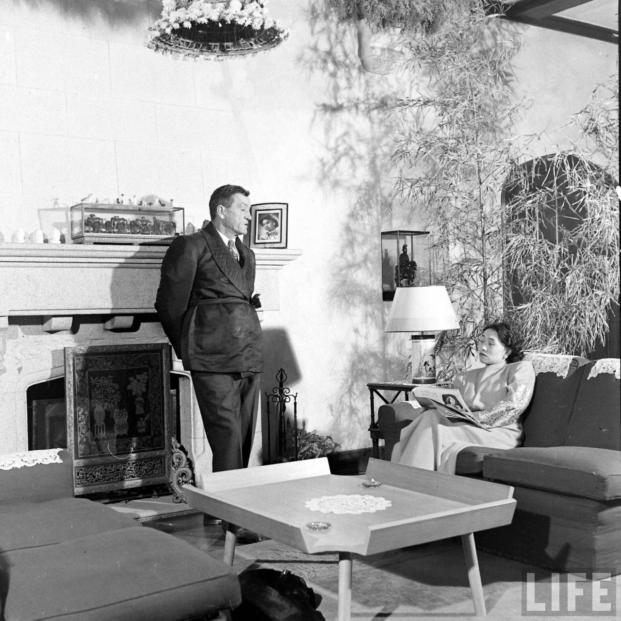 1947年,上海。陈纳德与陈香梅在寓所。.jpg