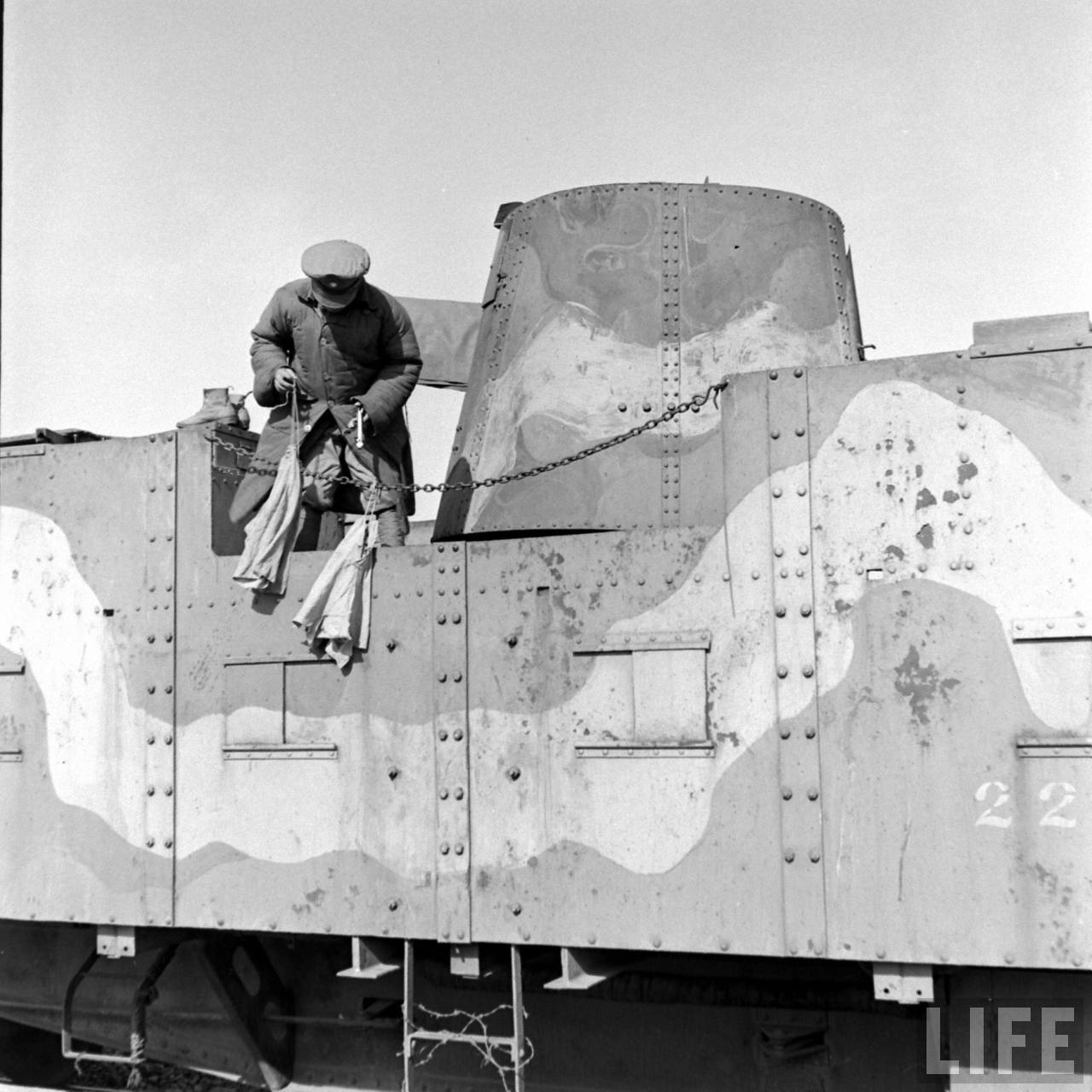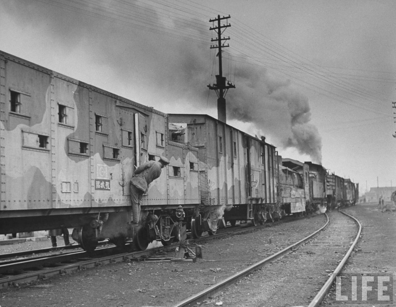 | 1947年,北满。国军士兵吊在军列外警戒,这是蒸汽火车头拉动的货运列车,名字叫“临城号”。.jpg | 2023-February-23 22:55 | 151.21 KiB |